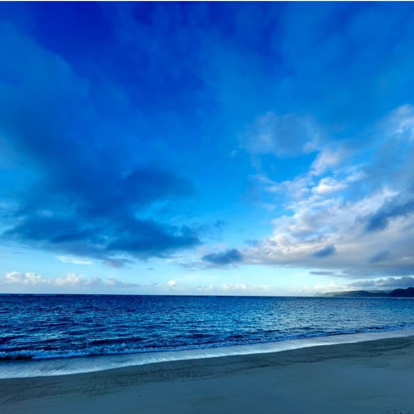 奄美の朝の海岸はとても穏やかです。美しい光の中でゆったりとした1日を過ごしましょう。