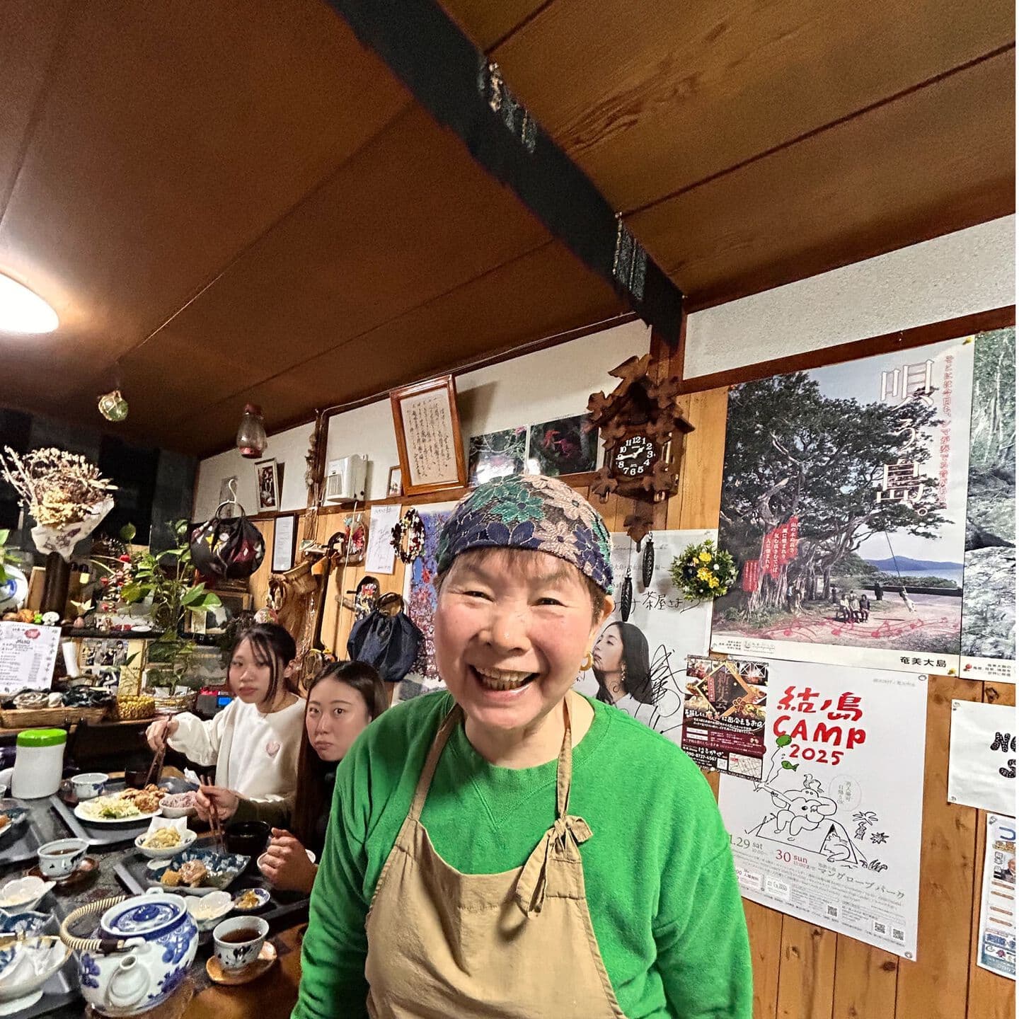 とてもおいしい郷土料理を出してくれるハナハナ茶屋のおかみさん。世界遺産センターでは奄美の固有種の生態系を学びます。